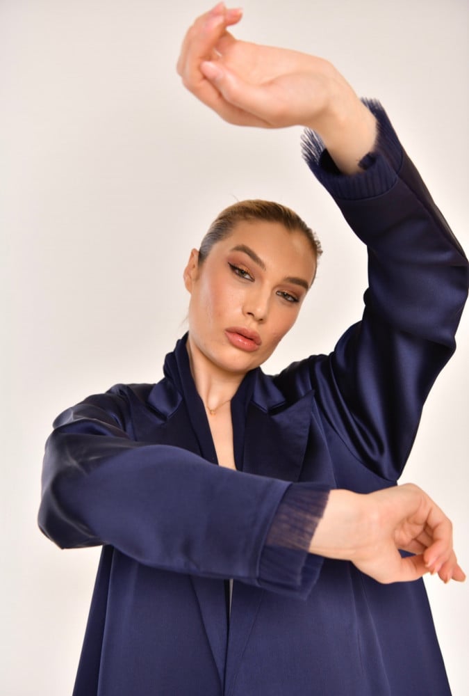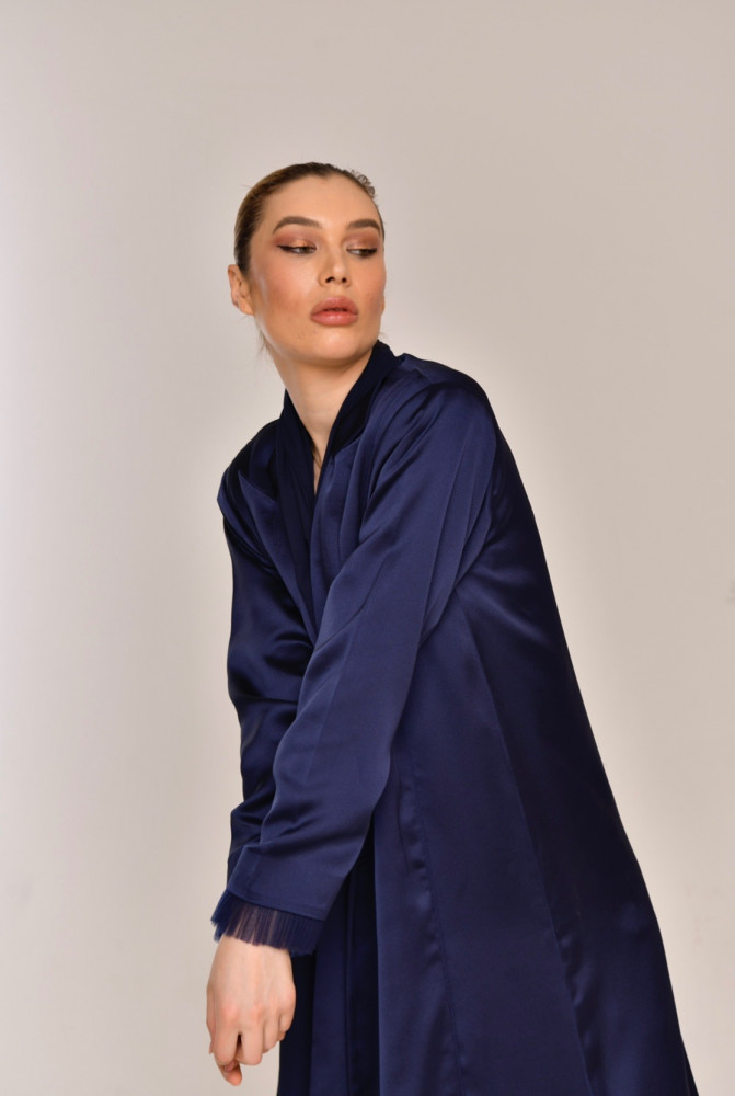 عباية كريب خشن و تُل مبطنة بالكامل من الداخل بخياطة مخفية