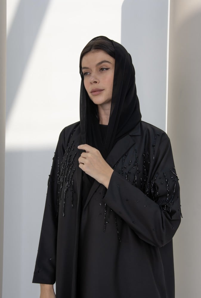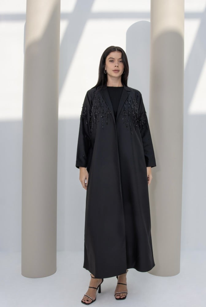 عباية بخامة الكتان الإندونيسي بتفاصيل مشكوكة يدويا